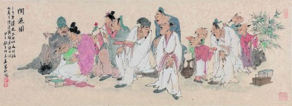 于是我说,逍遥山水——画的是人与山水彼此相悦的自然情怀,古人在这个点上是偶做,我是大投入,现在画人物山水画的人不多了,有点象非遗。我喜欢人物山水画,所以我倡导并要发扬光大,这是一份责任。我希望建立自己的人物山水画的艺术语境,有当下意识,有传统精神,还要画得自在,画得逍遥。