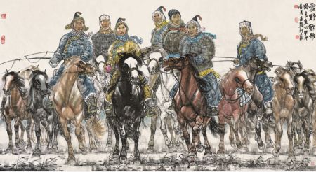 2013年,《群雄傲雪图》等作品参加“当代画马名家迎马年作品精品展”