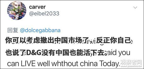不知道这句话让热衷于“推特治国”,并且还被D&G支持的特朗普看到会是个什么反应……