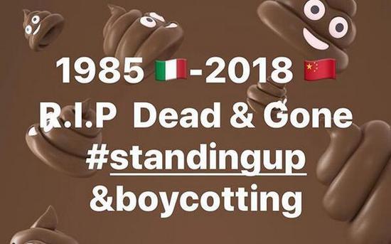 人们将D&G衣服、鞋子被烧掉的视频或照片,上传到这个专题以示抗议。